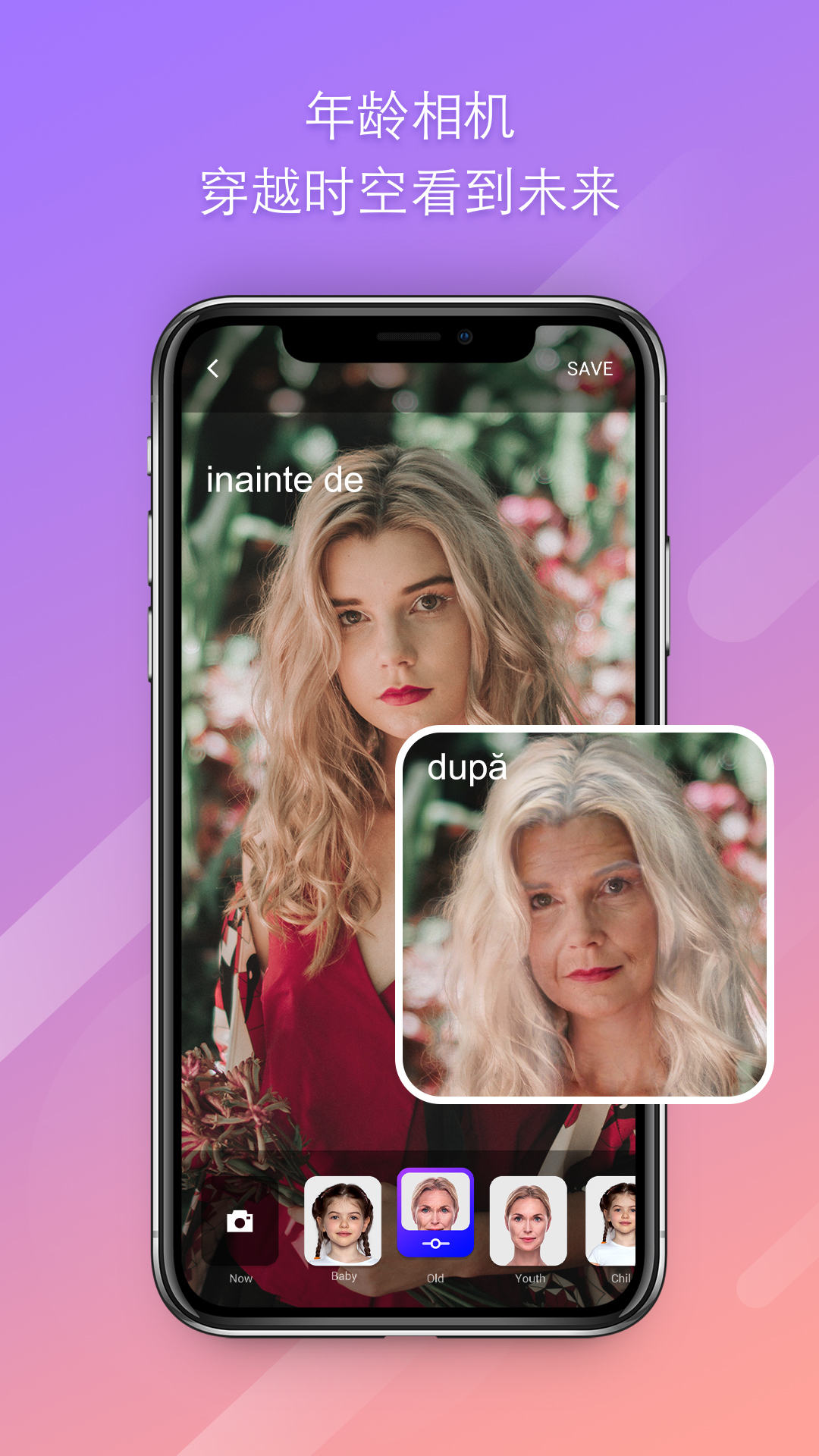 - 年龄相机:通过先进的人脸识别技术,您可以一键看到自己孩童时期的模样,还能预测未来50岁和70岁时的样子,体验时光穿梭的神奇感受。