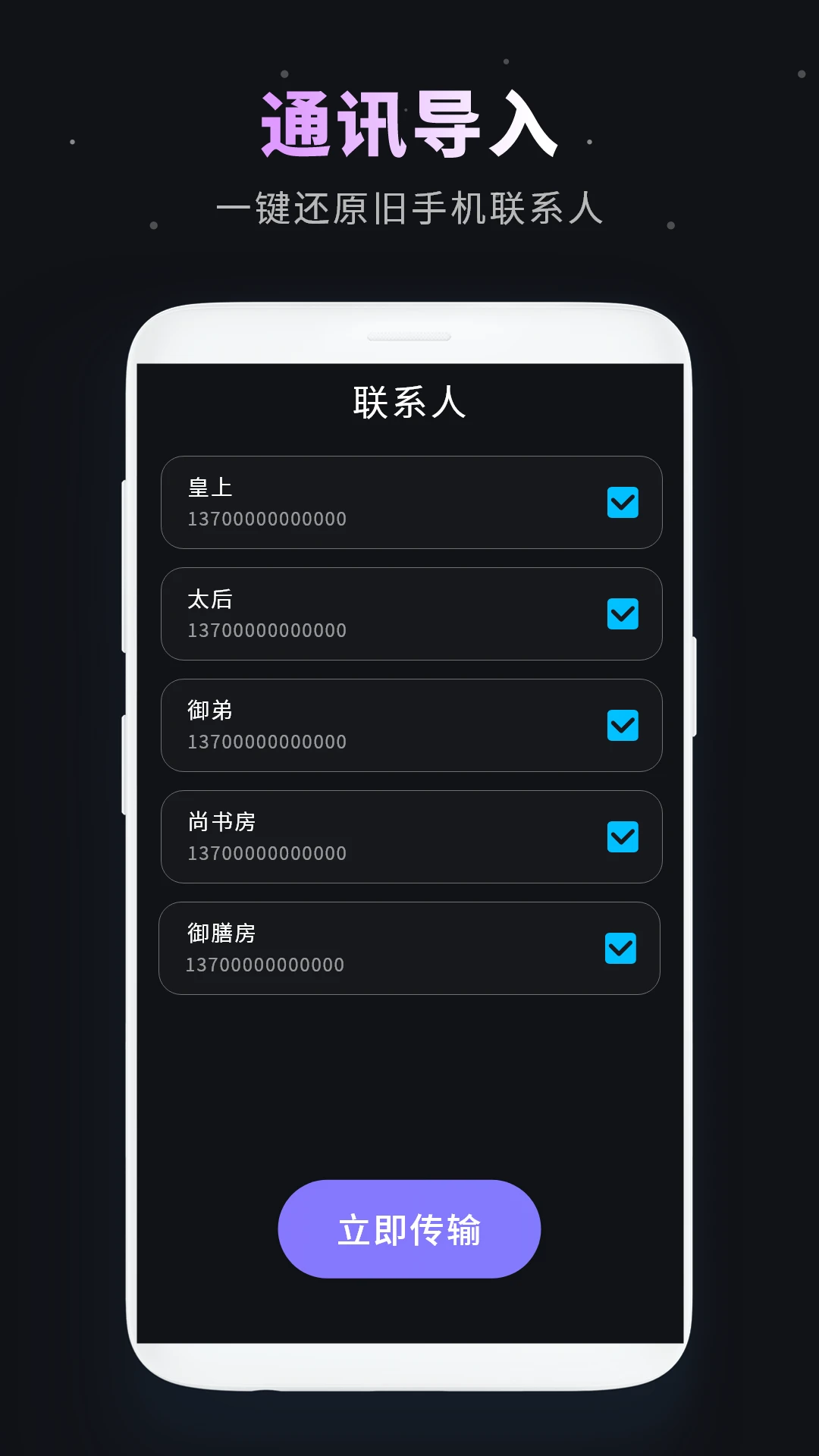 联系人同步功能支持新旧手机双重选择模式,实现秒速同步