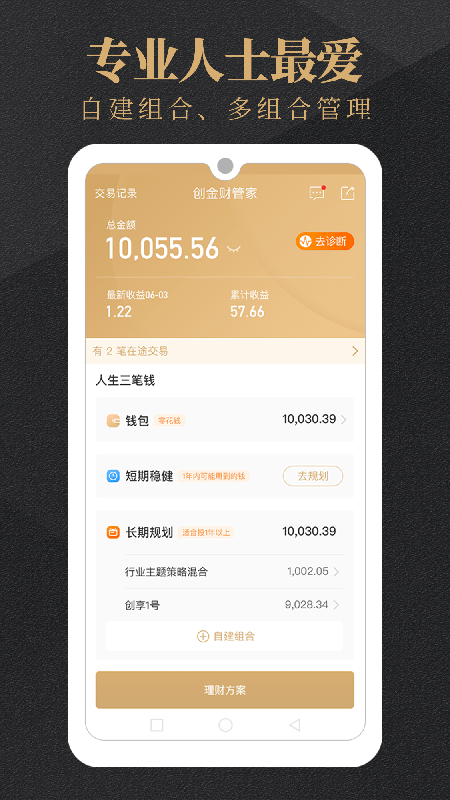 创金财管家APP是一款专业的智能财富管理工具,致力于为用户提供全方位的资产配置服务。该应用独创"三笔钱"理财理念,通过智能算法为用户量身定制投资方案,无论是零钱管理、稳健增值还是长期投资需求都能得到专业规划。平台汇聚专业投研团队智慧,提供从投前规划到投后管理的全周期服务,支持个性化组合创建与多账户管理,让普通投资者也能享受机构级的理财体验。简洁直观的操作界面配合智能风控系统,让财富管理变得既简单又安心。