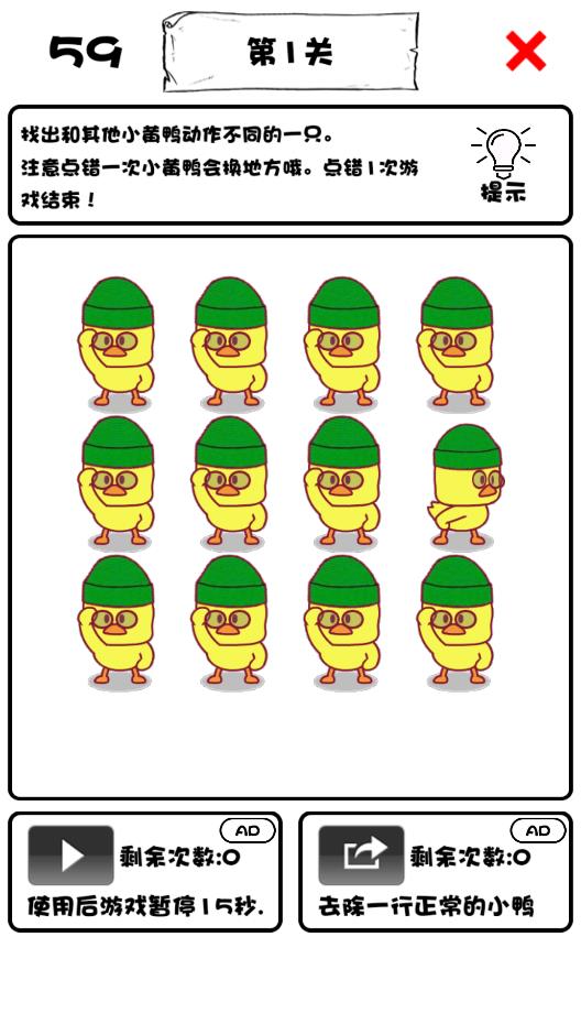 抖音小黄鸭游戏是近期在抖音平台爆火的休闲益智游戏,主打考验玩家眼力和反应能力。游戏核心玩法是从一群看似相同的黄色小鸭子中找出与众不同的那一只,随着关卡推进,难度会逐渐提升,鸭子数量增多且差异更加隐蔽。特别的是每关只有一次选择机会,一旦选错就要重新开始,这种设定大大增加了游戏的挑战性和趣味性。游戏还加入了排行榜功能,可以和好友一较高下,看看谁的眼力更胜一筹。