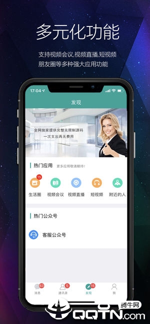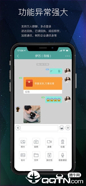 消息,支持长文本、图片、录音、录像、名片、位置、动画、文件、红包、截图等类型。消息编辑功能支持撤回修改,避免发错消息的尴尬。