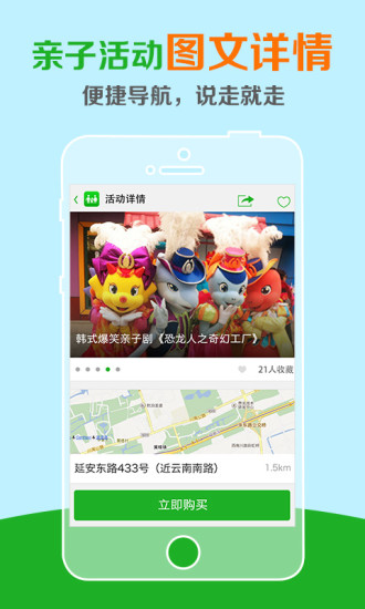发现身边的亲子场所,增加门票预订功能,一键导航直达目的地,省去排队购票的烦恼,让亲子出行更加便捷。