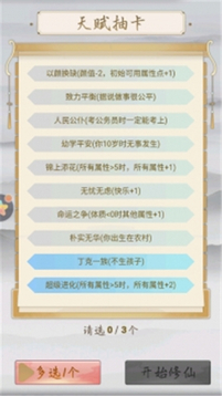 游戏以精彩的文字冒险为核心玩法,玩家可以通过选择不同的天赋来塑造个性化的修仙之路。操作方式简单易上手,即使是新手也能快速掌握游戏精髓。引人入胜的剧情设定为玩家营造了极强的代入感,让人沉浸在这个充满奇遇的修真世界中无法自拔。