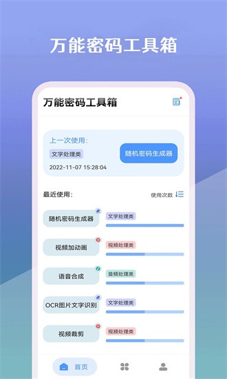万能密码工具箱是一款功能强大的多合一实用工具软件,集密码管理、设备优化、网络安全于一体。它不仅提供专业的随机密码生成功能,还能帮助用户轻松管理各类账号密码。软件内置图片处理工具,支持多种尺寸调整和格式转换;同时具备音频格式转换功能,兼容MP3、WAV等主流音频格式。其智能安全防护系统可24小时监控手机状态,有效拦截病毒和恶意程序,全方位保护用户隐私和数据安全。