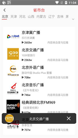 覆盖全国1000余家电台,包含各地FM调频广播节目,从中央台到地方台一应俱全