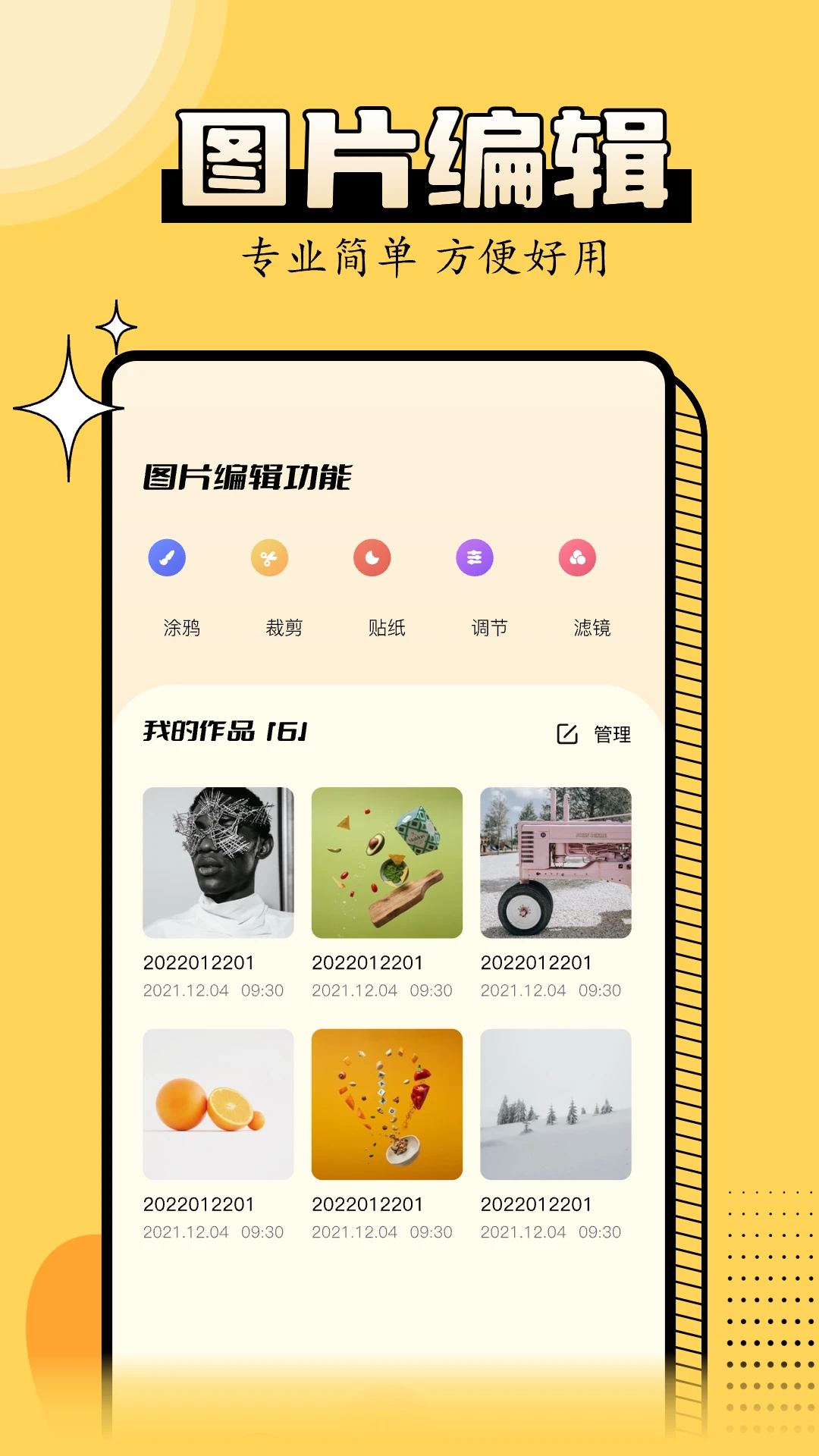 图片编辑功能:您可以进行图片涂鸦、裁剪、贴图、调节、滤镜等操作。