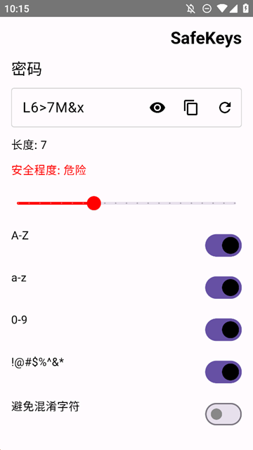 密码生成手机安卓版是一款专为安卓设备优化的智能密码管理应用,致力于为用户打造全方位的数字安全防护体系。该软件采用军工级加密算法,能够瞬间生成包含大小写字母、数字及特殊符号的超强组合密码,有效防范字典攻击和暴力破解。其人性化设计支持自定义密码规则,用户可根据不同平台的安全要求灵活调整密码长度和字符组成。独创的离线运行模式确保所有密码生成和存储过程都在本地完成,彻底杜绝网络传输风险。无论是日常社交账号还是重要金融账户,这款应用都能提供专业级密码解决方案,让您的数字生活更安全、更便捷。