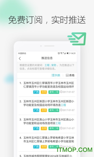 个性化订阅中心,可设置50+个订阅条件,实时推送用户关注的招投标信息
