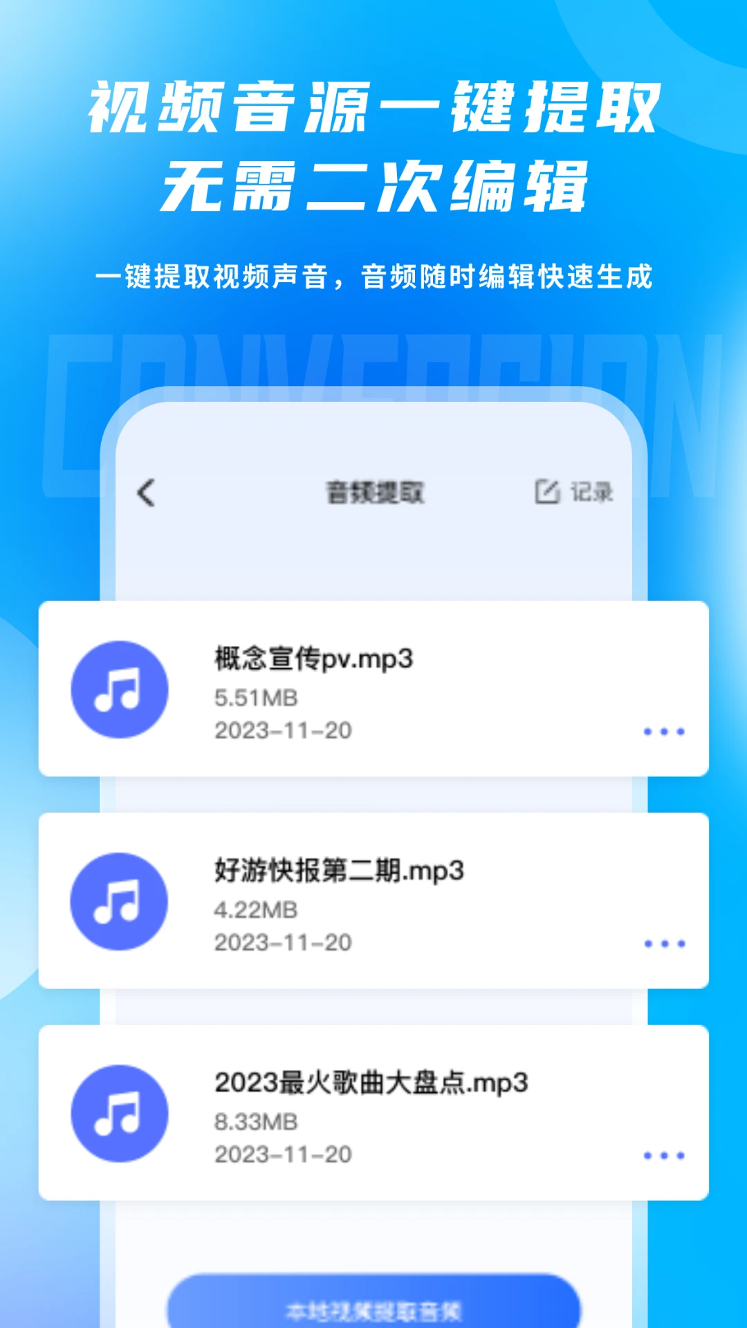 支持音频提取功能,用户可以从视频中一键提取音频文件,并保存为MP3、WAV等格式。