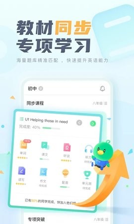 听说同步:精心设计符合教材单元主题的听力口语训练题库,题型丰富多样,难度循序渐进,全面提升听说能力
