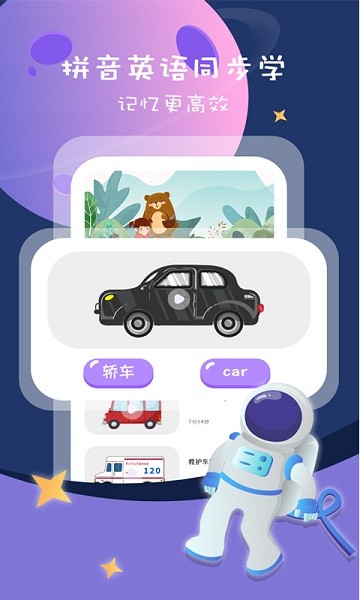 基于看图识物的儿童早教识字卡大全,配合专业配音和动画演示,实现网络虚拟教师在线授课功能,让父母陪伴孩子学习变得更加轻松高效。