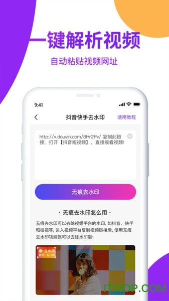 视频去水印:支持抖音、快手等主流平台的无水印视频下载,让您轻松获取优质素材。
