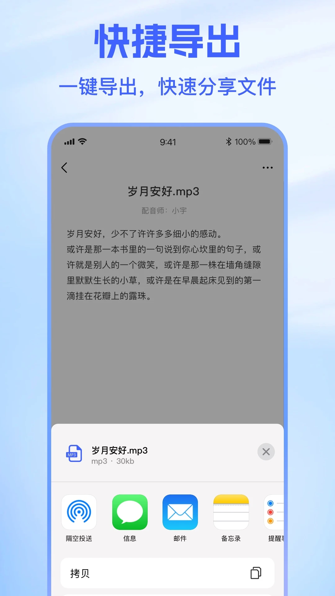 音频分享:文件支持多种格式导出;