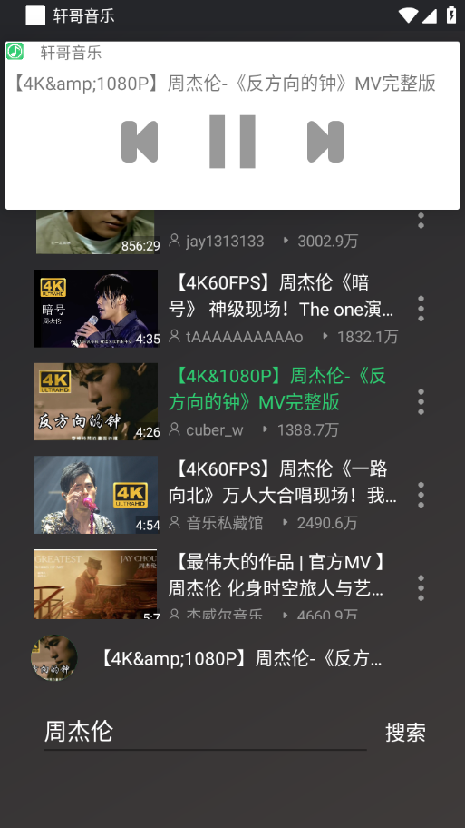 通过"在线搜索"功能,输入歌曲或歌手名即可查找并播放网络音乐,搜索结果支持按热度排序。