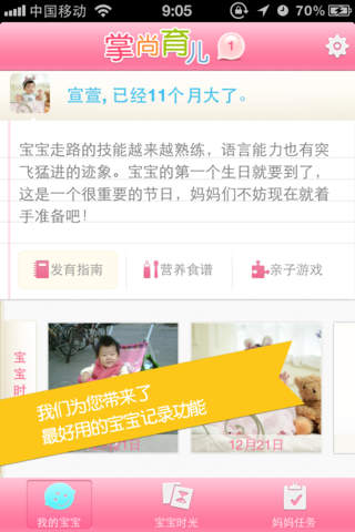 无论您是准妈妈还是新手妈妈,掌尚育儿都能为您提供全方位的育儿支持。从孕期保健到婴幼儿护理,从早期教育到营养指导,这款软件都能成为您育儿路上的得力助手。现在就下载体验,让掌尚育儿陪伴您和宝宝一起成长,记录每一个值得珍藏的瞬间!