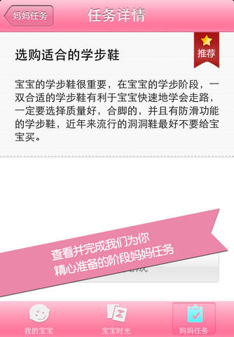 查看并完成当前阶段需要关注的任务,帮助妈妈们科学规划育儿日程