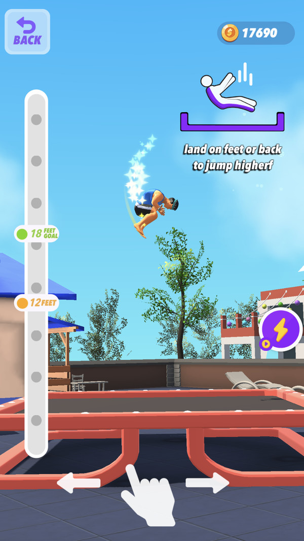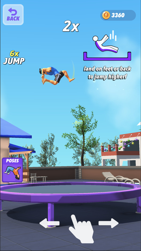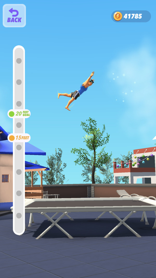 游戏操作简单易上手,只需通过点击屏幕就能控制角色的跳跃方向和移动轨迹,即使是新手也能快速掌握。游戏拥有丰富多样的场景设计,从城市屋顶到热带岛屿,每个关卡都经过精心打造,带来不同的视觉体验。玩家需要精准控制跳跃时机,才能获得更高的分数。游戏采用独特的自定义物理引擎和动画布娃娃物理系统,玩家可以解锁数十种不同的特技动作,从基础的后空翻到高难度的三重转体,让你的表演更加精彩。