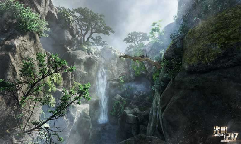 A:洞穴外部的悬崖是跳不过去的,在悬崖场景将镜头上抬,可以看到远处树枝上有一个标记点,对准标记点使用绳索,用绳索荡过去。注意观察环境中的提示标记,很多看似无法通过的区域都暗藏机关或特殊道具。