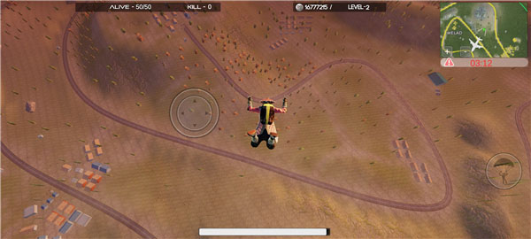 我们先乘坐飞机,找到想去的地方,点击右下角跳伞。跳伞时机和位置的选择是获胜的第一步,需要根据航线、资源分布等因素综合考虑。