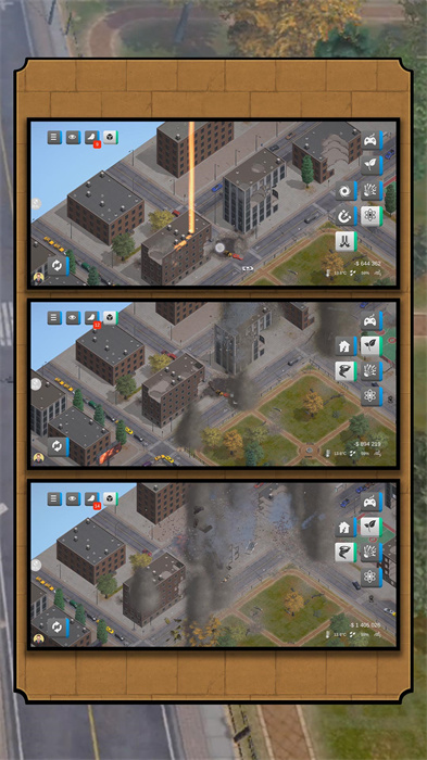 城市还原的创新机制:除了破坏,游戏还加入了独特的还原功能。玩家可以随时通过左下角的还原按键,将破坏后的城市恢复原状。这个功能不仅增加了游戏的可玩性,也让玩家能够反复体验不同破坏方式带来的乐趣。
