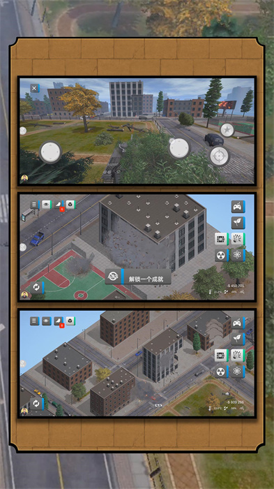 建筑破坏的多样选择:游戏提供了丰富的破坏技能系统,玩家可以通过升级解锁更多破坏方式。从简单的推倒建筑到引发连锁爆炸,每种破坏方式都能带来不同的视觉享受。游戏中的建筑都经过精心设计,破坏时会呈现真实的物理反应。