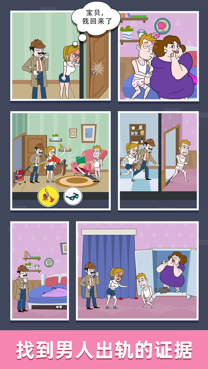 找出男人出轨的证据,需要玩家在限定时间内对比聊天记录、消费账单等二十余种数字线索;