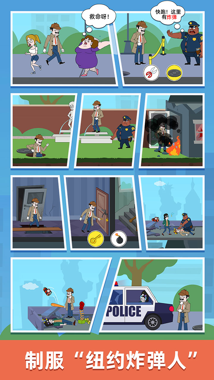 制服"纽约炸弹人"章节引入实时倒计时机制,玩家要在爆炸前完成拆弹小游戏;