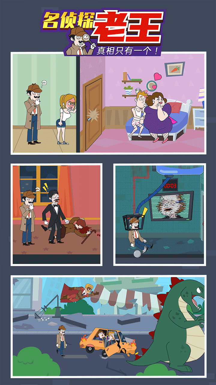 《名侦探老王》是一款由《救救小姐姐》原班团队打造的爆笑解谜游戏,延续了前作标志性的诙谐美术风格。玩家将扮演头戴鸭舌帽、总爱叼着棒棒糖的天才侦探老王,穿梭于各种荒诞离奇的案件现场。从电锯惊魂式密室逃脱到国家宝藏失窃案,每个案件都充满令人捧腹的细节设计。游戏包含数十个风格迥异的章节剧情,玩家需要通过细致观察和逻辑推理,在看似无厘头的场景中抽丝剥茧,最终揭露隐藏在搞笑表象下的真相。独特的漫画式过场动画和夸张的人物表情,让解谜过程充满意外惊喜。