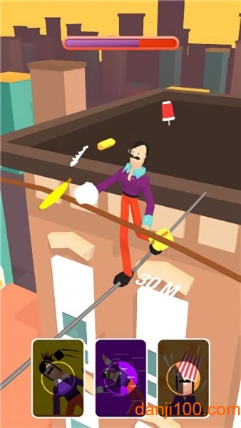 移动速度是固定不变的,最主要的就是考验我们的平衡控制能力。建议新手先从单人模式开始练习,掌握基础操作后再挑战多人模式。超多不同的服装等待着你来解锁,例如学生服装、稻草人服装等等。每种服装都会带来独特的属性加成,比如增加稳定性或提升移动速度。成为一个走钢丝的达人,在世界各地的钢丝索道上表演你的走钢丝技术。注意收集场景中的金币和道具,它们能帮助你在关键时刻扭转局势。