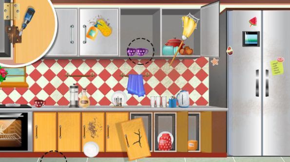 游戏贴心地设置了提示系统,当玩家不知从何入手时,可以随时向系统寻求建议。采用直观的手指点击操作方式,通过简单的触控就能完成各种复杂的清洁任务。虽然整理过程可能漫长繁琐,但游戏通过轻松愉快的氛围让这个过程充满乐趣。每个房间都设计了独特的挑战,从明显的污渍清理到隐藏角落的细节处理,考验着玩家的观察力和耐心。