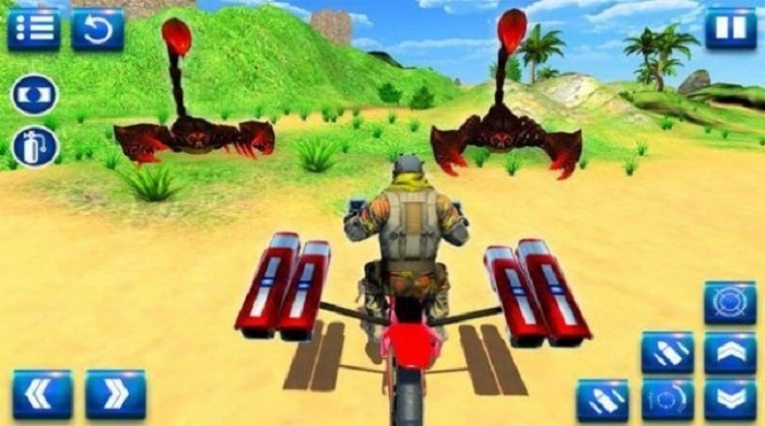 《摩托车沙滩搏斗》最大的特色在于其独特的战斗系统。玩家需要同时兼顾驾驶和战斗两个环节,既要保持摩托车的平衡和速度,又要精准地使用武器攻击敌人。游戏中的怪物种类繁多,每种怪物都有不同的攻击方式和弱点,玩家需要根据实际情况采取不同的战术。此外,游戏还加入了丰富的物理效果,摩托车的漂移、跳跃等动作都会影响战斗的成败,为游戏增添了不少策略性。