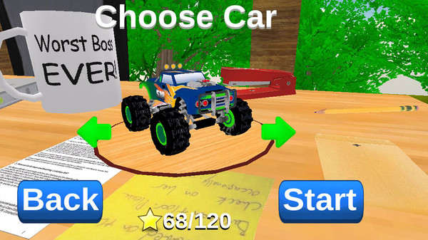 这是一款充满创意与乐趣的遥控车模拟游戏,玩家将操控一辆造型夸张的怪物卡车,在精心设计的办公室环境中展开冒险。游戏提供了高度自由的探索体验,你可以驾驶卡车穿梭于办公桌、文件柜和会议室之间,收集散落在各处的星星。逼真的3D场景将现实办公室的细节完美还原,从打印机到咖啡机,每一处都暗藏惊喜。无论是攀爬障碍物还是完成特技动作,都能让你感受到独特的驾驶乐趣。
