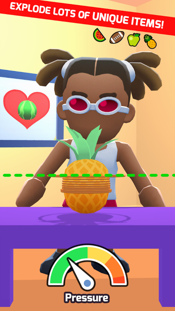 游戏的另一大亮点是轻松愉快的氛围。卡通风格的画面设计,搭配欢快的背景音乐,让玩家在粉碎水果的过程中获得极大的放松和愉悦。游戏还特别设计了"减压模式",在这个模式中,玩家可以尽情粉碎水果,释放压力,享受纯粹的粉碎乐趣。