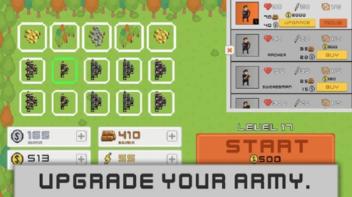 《壮大军队》是一款以像素风格为主的策略类游戏,玩家将沉浸在一个充满战术与挑战的世界中。游戏的核心玩法围绕着军队训练、兵种搭配和策略对战展开,每一场战斗都需要玩家精心策划和灵活应对。游戏中的兵种设计非常丰富,每个兵种都有独特的技能和成长路线,玩家需要通过不断的训练和升级来强化自己的军队。无论是弓箭手、骑士、重装步兵还是攻城器械,都能在对战中发挥关键作用。游戏强调循序渐进的过程,没有捷径可走,只有通过不断的尝试和优化战术,才能最终取得胜利。