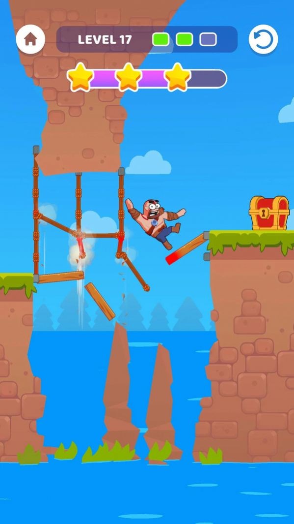 这款以桥梁建造为主题的冒险游戏采用了精美的3D卡通风格,物理引擎模拟真实世界中的力学原理。玩家需要扮演一位穿着绿色衣服的可爱角色,面对形态各异的峡谷地形,巧妙运用系统提供的木材等材料,设计出结构合理的桥梁。每一关都需要你仔细思考支撑点和受力分布,稍有不慎就会导致桥梁坍塌。随着关卡推进,地形复杂度会逐渐增加,需要你发挥更强的空间想象力和工程计算能力。