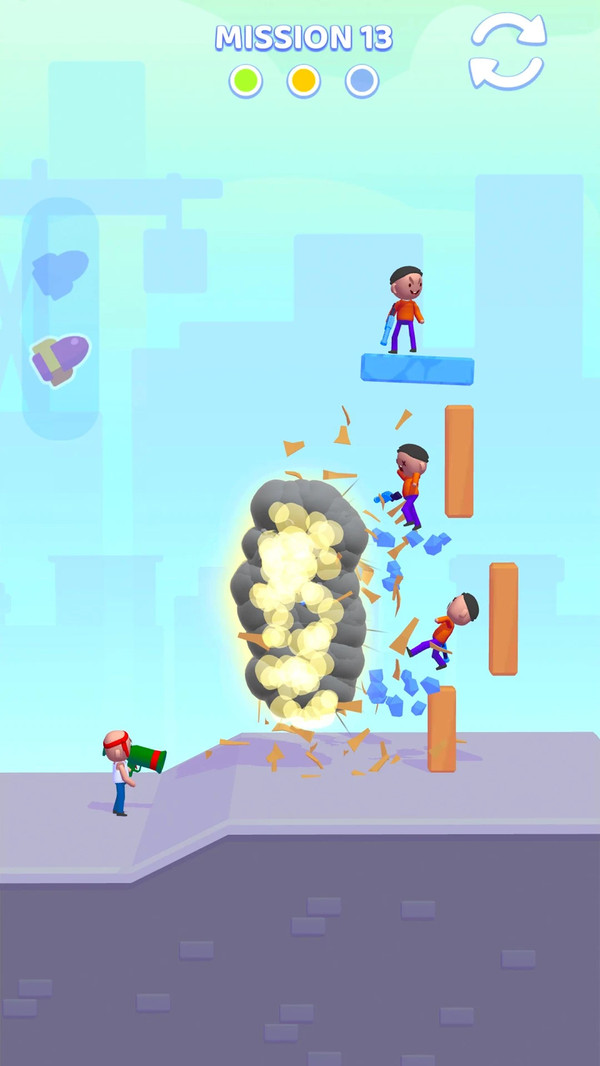 在《愤怒的火箭筒》中,胜利的关键在于合理的预判和精准打击。游戏采用直观的操作方式,让新手玩家也能快速上手,同时丰富的关卡设计又为高手玩家提供了足够的挑战空间。Q萌可爱的游戏画面搭配紧张刺激的对战节奏,形成了独特的游戏体验。每个关卡都经过精心设计,需要玩家发散思维,尝试不同的射击角度和策略才能顺利通关。