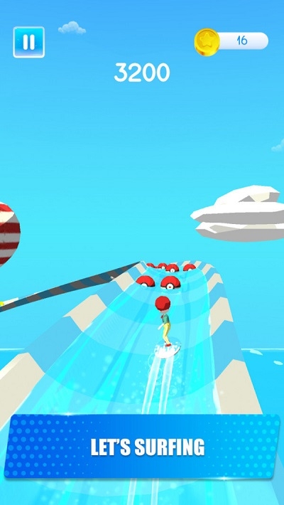 在《人类缤纷冲浪最新版》中,玩家需要具备敏锐的观察力和闪电般的反应速度才能完成各种高难度特技动作。游戏采用独特的海上跑酷玩法,所有场景都设置在浩瀚无垠的海洋上,带来耳目一新的视觉体验。赛道设计充满挑战性,既有蜿蜒曲折的急转弯,也有突如其来的障碍物,玩家必须在保持高速滑行的同时时刻注意前方情况。游戏采用第三人称视角,你将操控一个造型可爱的火柴人角色,在蔚蓝的海面上做出各种令人惊叹的冲浪表演。