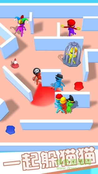 你来抓我呀以其简单易上手却又百玩不厌的游戏机制赢得了众多玩家的喜爱。游戏开始时,系统会随机分配玩家成为寻找者或躲藏者。寻找者需要在限定时间内找出所有隐藏的彩色小人,这些小人不仅会隐身还会不断移动,增加了寻找的难度。而躲藏者则需要巧妙利用场景中的各种元素隐藏自己,避开寻找者的视线范围,只要在倒计时结束前不被发现就能获得胜利。游戏不仅考验玩家的反应速度和操作技巧,更需要运用策略思维来制定最佳的躲藏或寻找方案。这款休闲竞技躲猫猫游戏将带给你最简单纯粹的快乐,快来加入这场充满欢乐的追逐战吧!