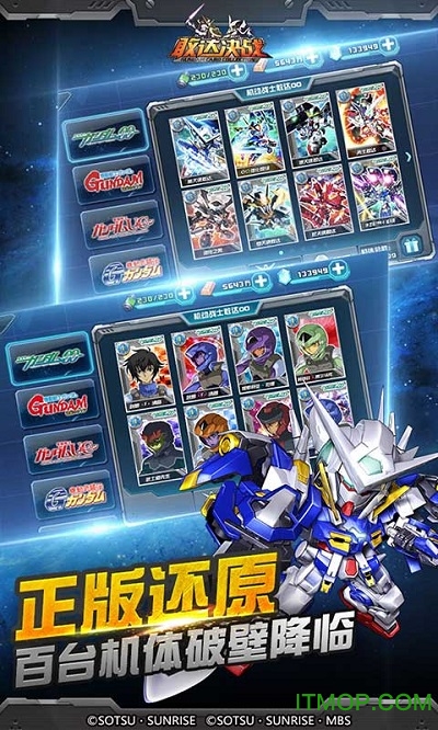 游戏收录了从初代高达到最新作品中的经典机体,所有高达均可通过游戏内玩法免费获取。玩家将组建自己的高达战队,为守护地球圈和平而战。