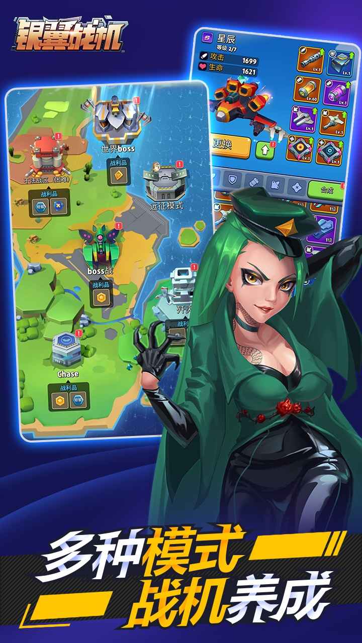 格式经典的战斗机,武器,弹药,大炮,设备,护盾,战斗伙伴,来丰富你的个人高科技武器库。通过收集和升级装备,打造属于你的最强战机,成为天空中的霸主。