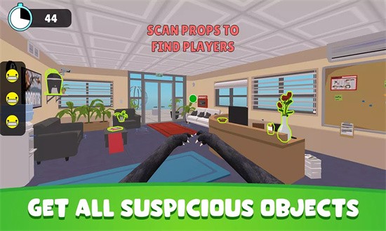 游戏操作简单易上手,但策略性十足。作为隐藏者,你需要仔细观察环境,选择最合适的物品进行伪装,同时注意保持静止避免被发现。作为猎人,则需要仔细检查每个可疑物品,利用特殊能力找出隐藏者。游戏支持多人联机对战,最多可支持8名玩家同场竞技。每局游戏时间控制在5-10分钟,节奏紧凑刺激。此外,游戏还设有多种特殊模式,如限时挑战、团队对抗等,大大增加了游戏的可玩性。