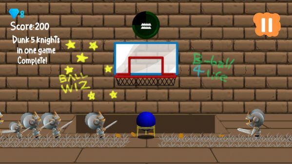 创新的投篮玩法,在这里你将控制发射器将骑士发射进篮框,获取更多的奖励积分。游戏场景丰富多变,从经典篮球场到奇幻城堡,每个场景都带来独特的视觉体验和游戏挑战。随着游戏深入,玩家可以解锁各种造型独特的骑士角色,每个角色都拥有专属的特效和技能,为游戏增添了更多收集和培养的乐趣。