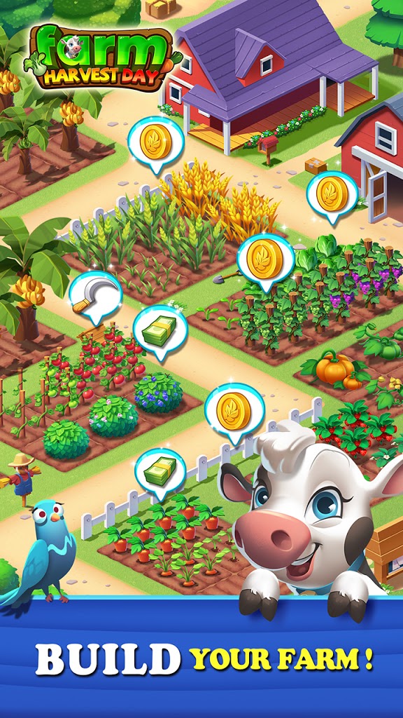 《农场丰收日》是一款集农场模拟经营与趣味消除玩法于一体的休闲手机游戏。在这个充满田园气息的虚拟世界中,玩家将化身一位可爱的女主角,来到风景如画的乡村,开始一段别开生面的农场生活。游戏初始阶段,玩家将获得一亩属于自己的农田,从零开始打造梦想中的农场王国。在这里,你可以种植各式各样的农作物,包括苹果、葡萄、胡萝卜、番茄等常见蔬果,通过精心的浇水施肥,见证它们从种子到丰收的全过程。