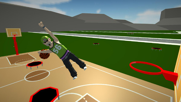 你可以穿上那些搞怪的衣服,通过弹跳床进行扣篮。游戏提供了超过50种服装选择,从超级英雄战衣到食物造型,每套服装都会影响角色的物理特性,比如穿着热狗装时会有更夸张的弹跳效果,而穿着西装则会让动作更加优雅。