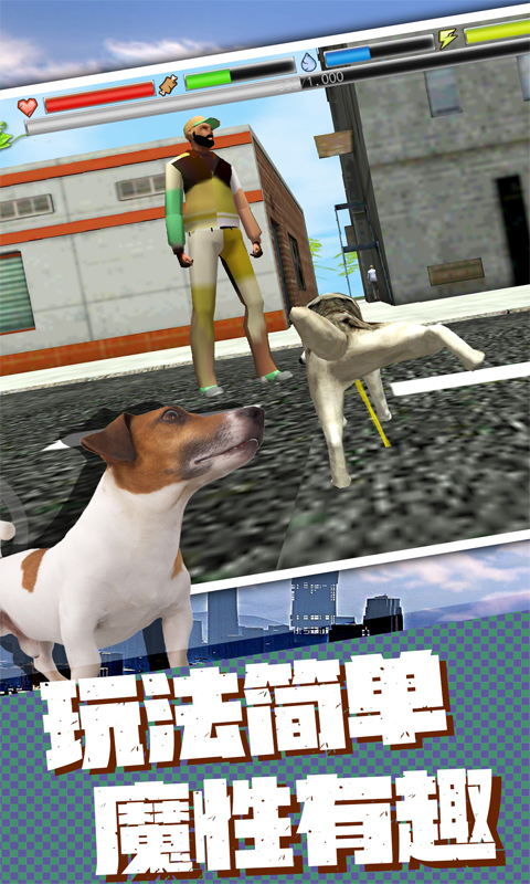 游戏采用了创新的生理系统,狗狗的饥饿值、体力值、情绪状态都会实时变化,玩家需要时刻关注这些指标,确保爱犬健康成长。操作方面,游戏提供了直观的动作控制系统,玩家可以轻松指挥狗狗完成奔跑、跳跃、攻击等多样化动作。作为一款开放世界动作模拟游戏,流浪狗生存模拟器不仅让玩家体验狗狗的日常生活,更能深入探索城市中隐藏的秘密和挑战,感受作为一只流浪狗的独特视角和生存智慧。