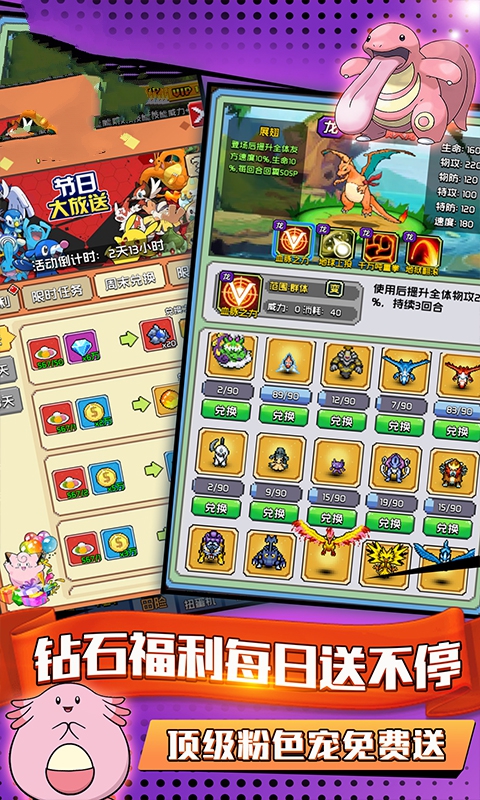游戏最吸引人的特色在于其丰富的精灵收集系统。玩家可以通过多种方式获得心仪的精灵,包括野外捕捉、精灵蛋孵化、任务奖励等。每只精灵都拥有独特的进化路线,玩家需要根据精灵的特性制定培养策略。游戏还引入了创新的放置玩法,即使离线也能获得收益,让玩家可以轻松享受游戏乐趣。此外,游戏定期更新限时活动,推出稀有精灵和专属装备,为玩家带来持续的新鲜感。