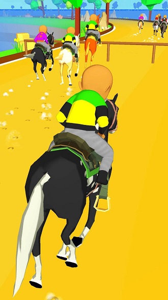 真实般的比赛氛围让赛马过程充满了欢乐,你可以听到观众们的欢呼呐喊声,现场音效逼真;控制一定要好,不然你很容易直接撞到其他的玩家,那么你就会直接淘汰,物理碰撞系统真实;专业的赛马比赛让游戏更有趣,成为马术运动员,骑着赛马参加不同的比赛,游戏还加入了马匹养成系统。