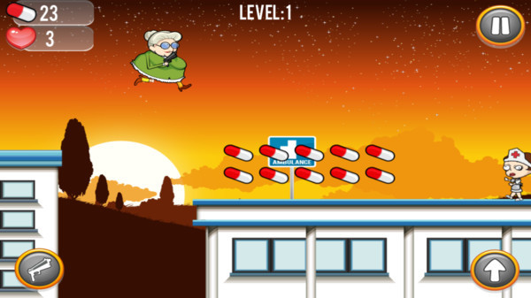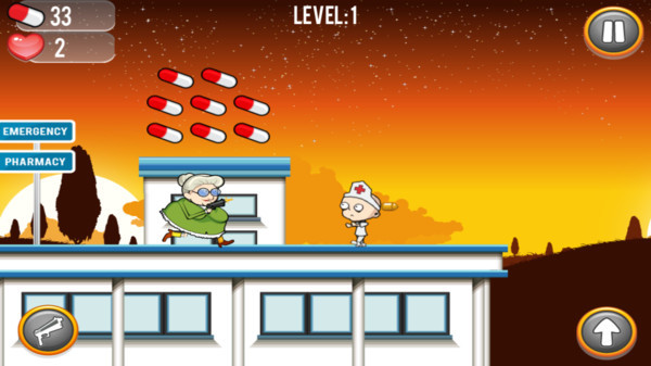 游戏的亮点之一是其独特的跳跃机制。在屋顶之间跳跃时,玩家需要精准控制老奶奶的起跳时机和落点,否则可能会掉入空隙中。有的屋顶还会出现红色的飞机,这些飞机会为游戏带来额外的挑战和惊喜。药丸作为老奶奶的主要武器,其作用类似于弹药,玩家需要合理分配药丸的使用,避免在关键时刻弹尽粮绝。游戏的画面风格轻松幽默,音效设计也充满趣味,能够为玩家带来愉快的游戏体验。