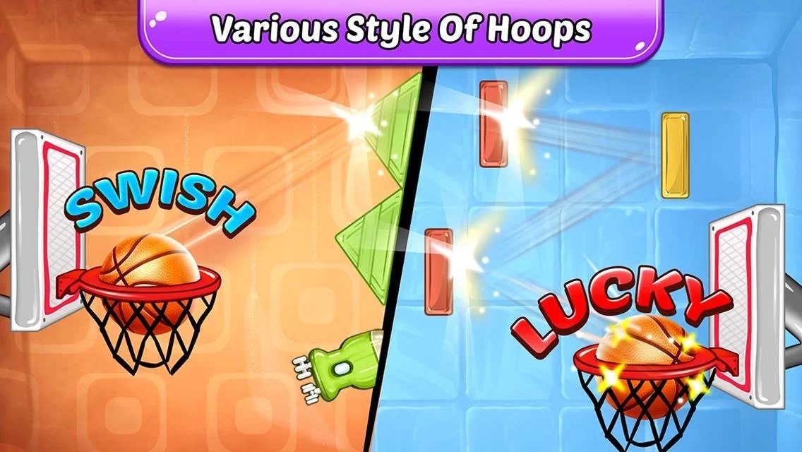 在你提高技能的同时获得惊人的分数,拖动手指瞄准篮球,然后释放让它飞起来。游戏独创的"手感系统"会实时反馈投篮力度和角度,通过震动和音效让玩家感受到真实的投篮反馈。连续命中会积累连击倍数,最高可达到10倍得分加成。