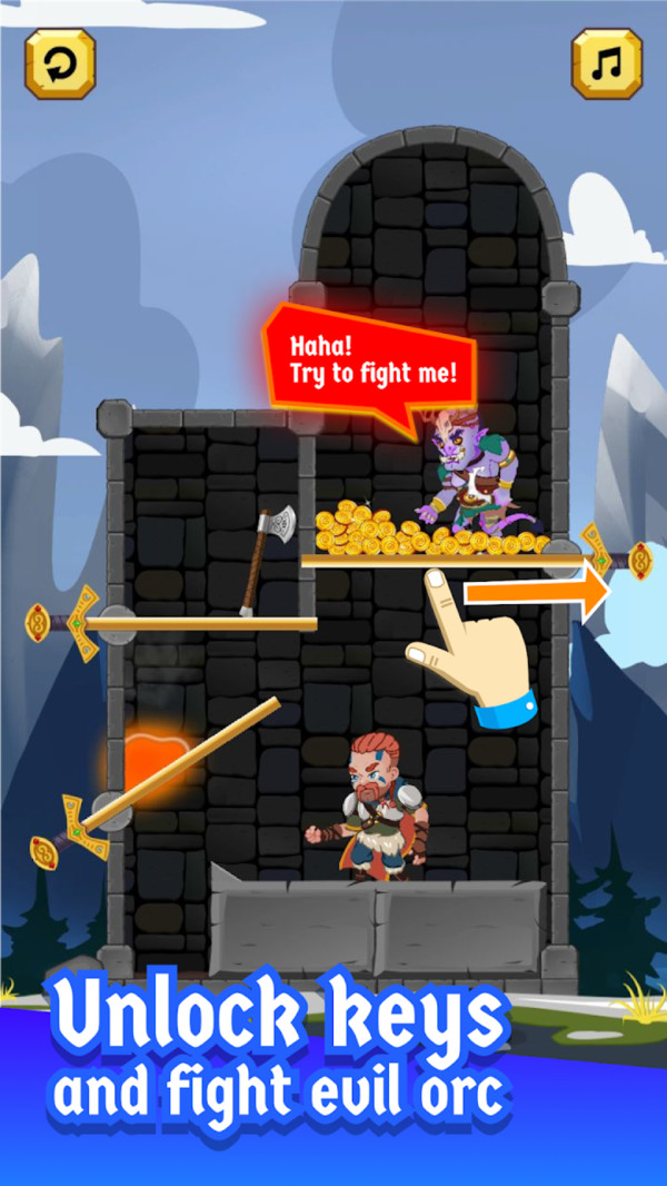 《救救维京国王》是一款极具创意的解谜冒险游戏,采用独特的拉针玩法为核心机制。游戏以精美的卡通风格呈现北欧维京世界,玩家需要通过精准的拔针操作来解救被困的维京国王。超过100个精心设计的关卡循序渐进地提升难度,从简单到复杂逐步考验玩家的观察力和逻辑思维能力。游戏操作简单易上手,但想要完美通关需要缜密的思考和策略规划,适合各个年龄段的玩家体验。丰富多样的场景设计和趣味十足的物理效果让解谜过程充满惊喜。